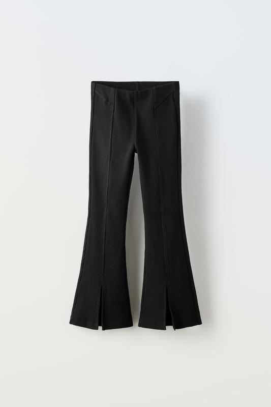 Расклешенные леггинсы с эластичным поясом. Разрезы спереди внизу. 96% БАВОВНАЯ 4% ЕЛАСТАН длина 92 см ширина в талии 27 см резинка, тянется ширина в бедрах 34 см ширина штанини вверху 18 см крок 70 см посадка 22 см