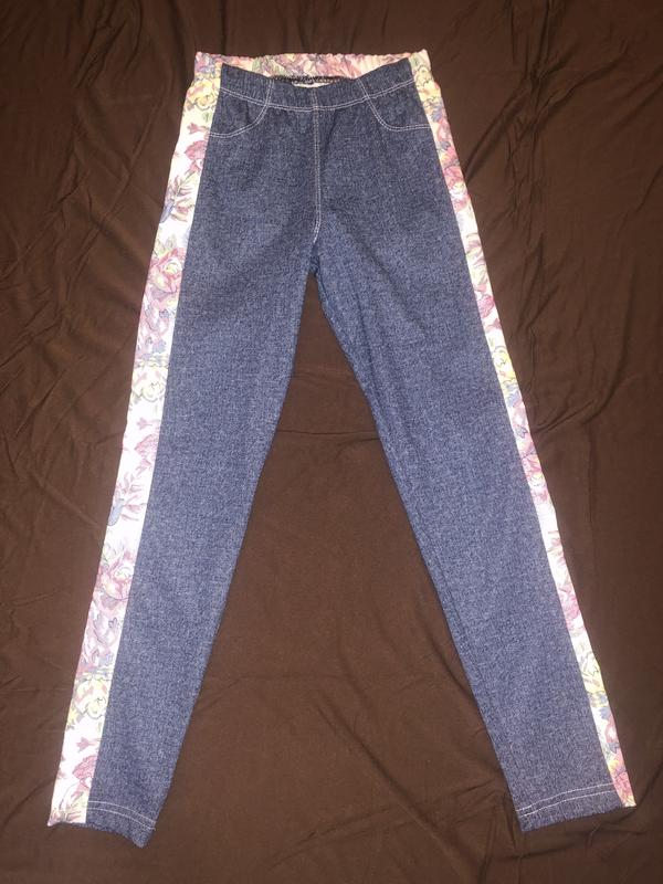 Лосини на дівчинку Забарвлення під джинс Заміри: довжина 72 см обхват пояса 50 см півобхват стегон 33 см шагова 44 см Розмір: 116/122 Тканина: 55% поліестер; 45% віскоза; 5% еластан Колір: синій