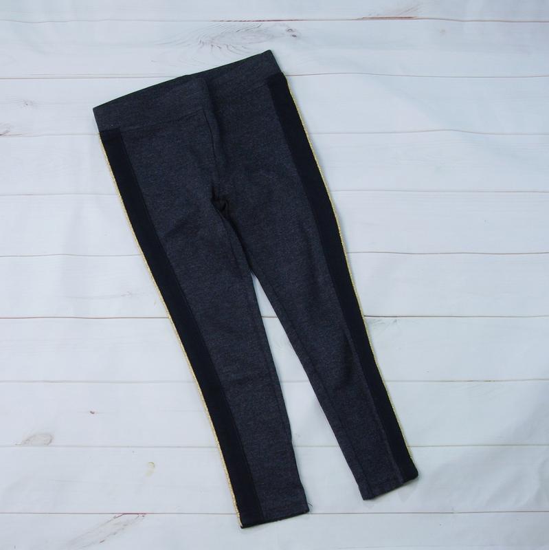 Трикотажні лосини з золотистим декоруванням по бокам. Трикотаж шкільний, трьохнитка. Широка резинка по поясу. Заміри: довжина бокового шву 57 см, в т. ч. резинка 3 см довжина шагового(внутрішнього) шву 42 см напівобхват по поясу(талії) 26 см, тягнуться до 32 см напівобхват по бедрам 28 см, тягнуться до 39 см напівобхват штанини пахова зона 16 см, тягнеться до 22 см напівобхват по низу штанини 8,5 см, тягнуться до 10 см довжина центрального шву по переду 17 см довжина центрального шву по спинке 23,5 см Оплата: післяоплата, предплата на карту, та через Шафу Доставка: Укрпочта, Новая почта та ін.