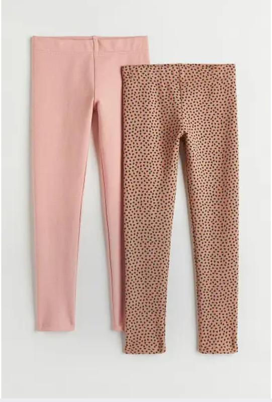 Леггинсы из прочного хлопкового трикотажа бренда H&M. Леггинсы из плотного трикотажа из органического хлопка с мягким начесом внутри. Узкий, легко одеваемый крой, эластичная талия. Цвет – бежевый, розовый. Тканина – 95% бавовна, 5% еластан. Цена указана за 1 лосины. Размер в наличии на рост 140см
