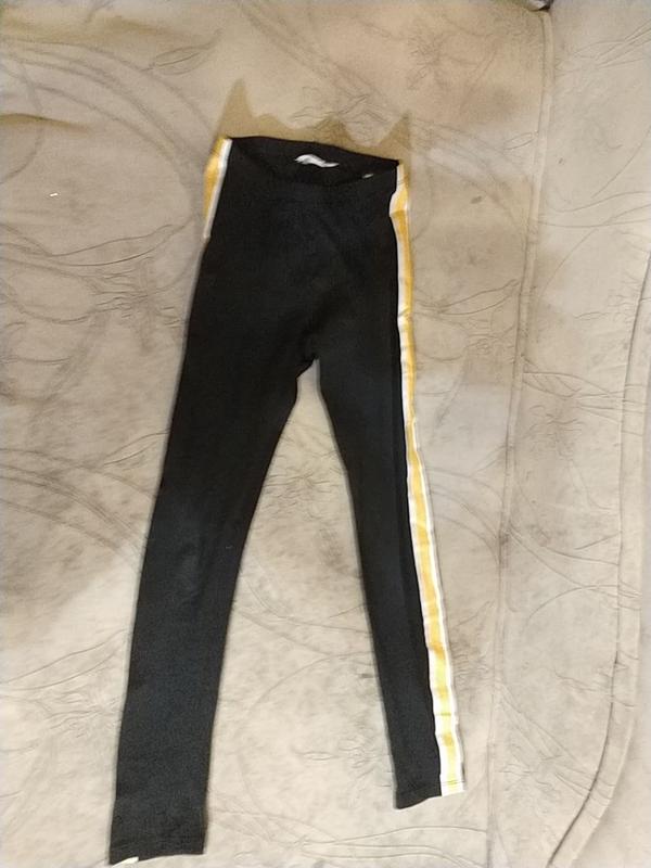 Подростковые лосины H&M, organic cotton.Черные с желтыми лампами, красиво тянутся.134 размер
