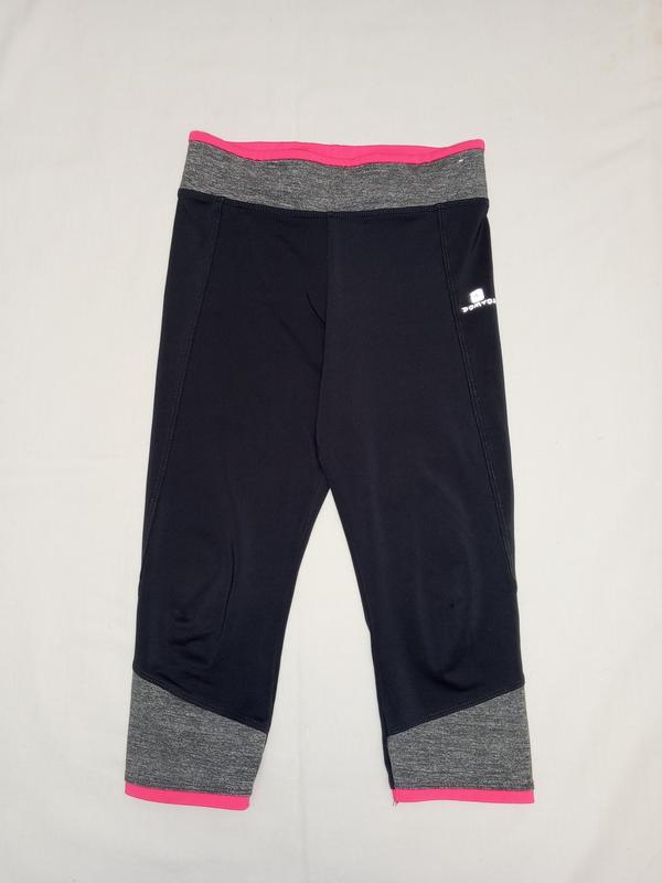 Подписывайтесь на мою страницу. Лосины леггинсы DOMYOS Обрезаны этикетки. Эластан, ткань немного тянется. Возраст около 5-7 лет. Смотрите замеры. Цвет серый. Хорошее состояние, есть незначительная дырочка на левом колене, фото. ПОТ 26 ПИБ 32 Посадка 21/23 Штанина 18/11 Длина 53/35