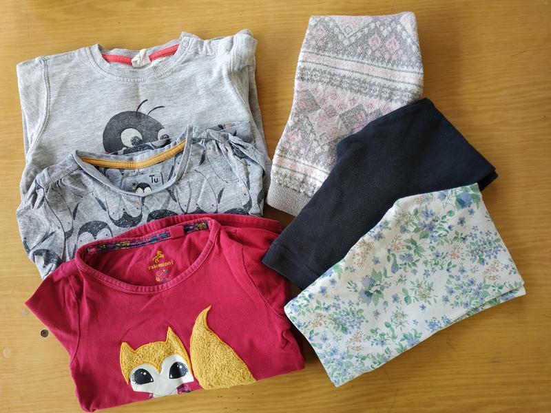 Лосины теплые Primark: длина 47 см, шаг 29 см, пояс 21 см. Реглан с лисичкой: длина 37 см, рукав 32 см,ширина груди 27 см. Реглан серый с пингвинами: длина 37 см, рукав 37 см, ширина груди 27 см. Лосины тонкие светлые Next: длина 48 см, шаг 32 см, пояс 21 см. Лосины тонкие черные: длина 51 см, шаг 35 см, пояс 25,5 см. Серая кофта на флисе с божьей коровкой: рукав 32 см, длина 40 см, ширина 31 см.