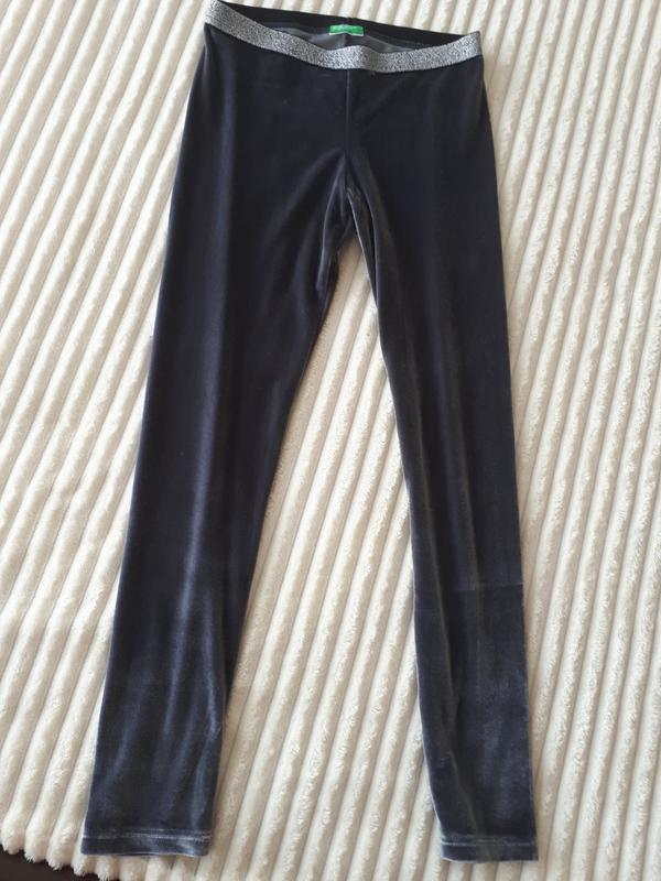 Лосины вилюровые серого цвета для девочки United benetton.На талии серебристая резинка. Mатериал: полиэстр, эластан, красиво тянется Размер: EURO 134 см, на 7-9 лет Состояние: в идеальном состоянии, одевались 1 раз