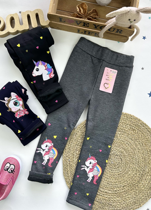 Удобные и практичные утепленные лосины! Отлично подойдут как для садика – так и просто для прогулок! Хорошо тянутся! У поясі-широка резинка. Украшены аппликацией. Верх- трикотаж, утепленные- мехом. Размеры: длина/шар 60 (104-110) – 58/35 КОЛЬОРИ- АСОРТІ!!! Цвет не выбирается (Серый, черный, синий)!