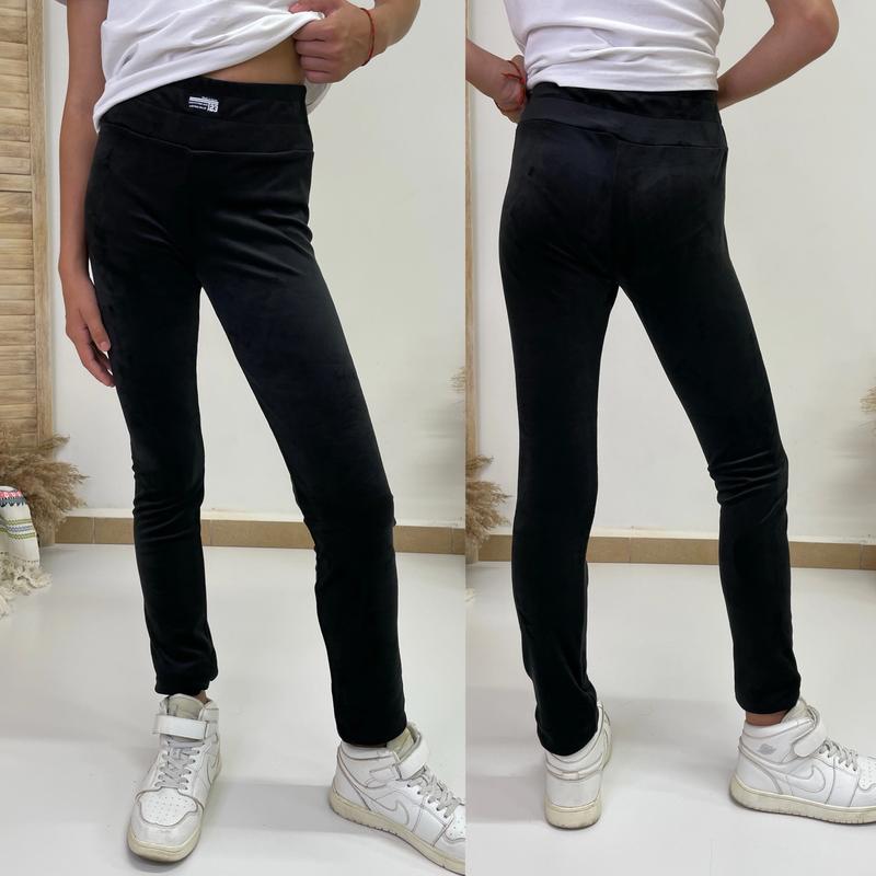 Таня арт 5406 Велюровые лосины очень проемные на ощупь из красивой качественной ткани высокая посадка нашивка может быть другой цвет ЧЕРНЫЙ РЕКОМЕНДУЮ! рост/длина/шак/пот похибка+-2см 140/89/66/26-10шт 146/92/68/27-10шт 152/96/71/28-10шт 158/100/73/28-10шт 164/103/75/29-10шт