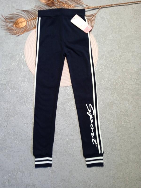 Спортивные лосины штаны для девочек. Идеальный выбор для физкультуры или для прогулок. Цвет темно синий Размер XХL это примерно 128-134 ориентируйтесь по замерам Пояс 25, длина 76, шаг 54 в наличии есть еще другие