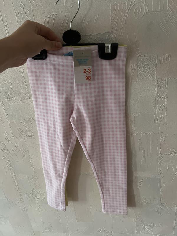 Яркий приятных цветов набор из двух лосин Primark на девочку 2-3 года (рост ориентовочно 98 см). Одни лосины лимонно-желтые, а другие нежно розовые с белым в клетку.