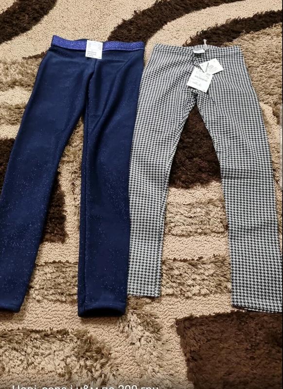 1.Новые лосины н & m (синие с люрексом), тонкие, размер 134, с этикетками. Можно на подарок. Длина синих 77см, шаговый 59см, талия 28.5 см в спокойном состоянии, бедра 32см, посадка спереди 22см, сзади 25см, все замеры выполнены в спокойном состоянии. 200 грн 2.С&А(черные, в школу) 134 см, этикетки не было, без начеса, имеет красивые ленты спереди и сзади, ткань не скатывается, замеры длина общая = 76 см, шаговый =57см, талия = 29см 200 грн 3.Suzi Новые, с этикеткой, под кожу, на велюре, мягкие, рост 134, темно-синего цвета.Замеры длина 78см, шаговый 61см, талия 28см, материал на талии мягкий. 200 грн Доставка за Ваш счет нп и уп.Обмина возврата нет