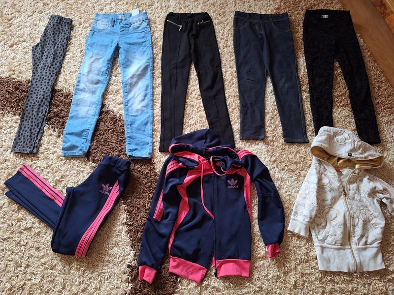 Пакет вещей для девочки р.140-146. 8 позиций. Спортивный костюм. лосины, стрейчевые джинсы, 3 пари легінсів.