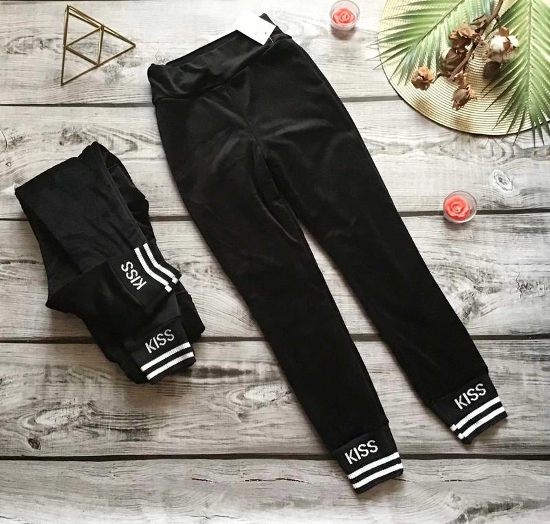 Велюровые лосины на флисе с манжетом. Теплые, мягкие, приятные к телу, с высокой талией. В поясе резинка. Цвет - черный. Ткань велюр, с внутренним флисовым подкладом. Манжет с надписью - KISS Замеры велюр-кис: 158 длина - 93см, шаг - 67см, пояс- 29см, полуобхват бедер - 42см. 158 длина - 96см, шаг - 70см, пояс- 29см, полуобхват бедер - 45см. Размеры в наличии: 158-1шт+1шт * 158 размер - 2 штуки с разными замерами