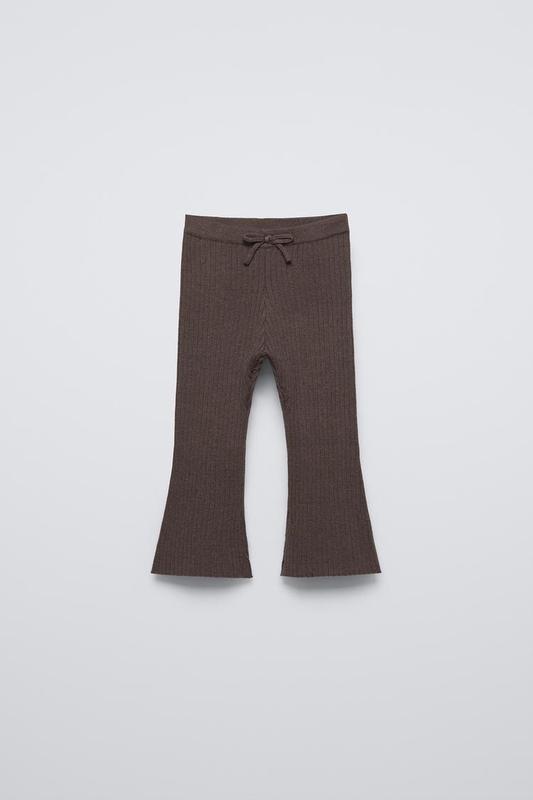 Цена 835 Расклешенные леггинсы с эластичной талией и бантической аппликацией спереди. Шоколад | 5536/490