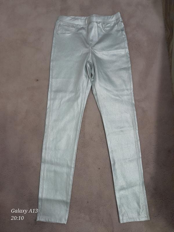 Стильные, модные лосины, брюки, серебристого цвета