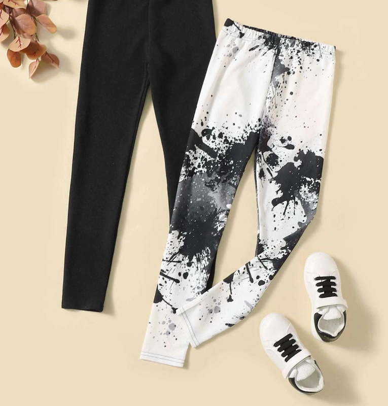 Лосіни легінси дівчинці принт мраморні чорно-білі shein