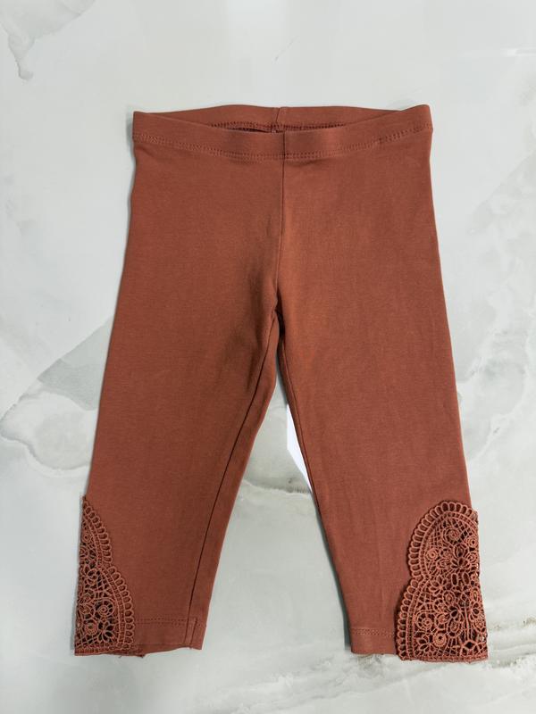 Лосины в идеальном состоянии, по бокам красивое кружево. Размер 110, замеры на фото, ткань тянется.