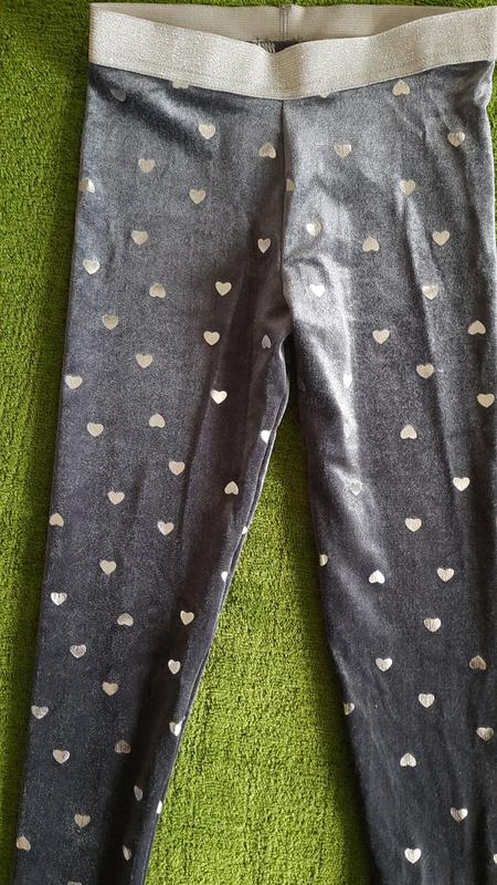 Лосинки велюр, в сердечки, зріст 116 см, 5-6 років 92% поліестер, 8% еластан. Пот 25 см, резинка, довжина 61 см, крок 45 см. Краще підійдуть на худеньку дівчинку або середню.