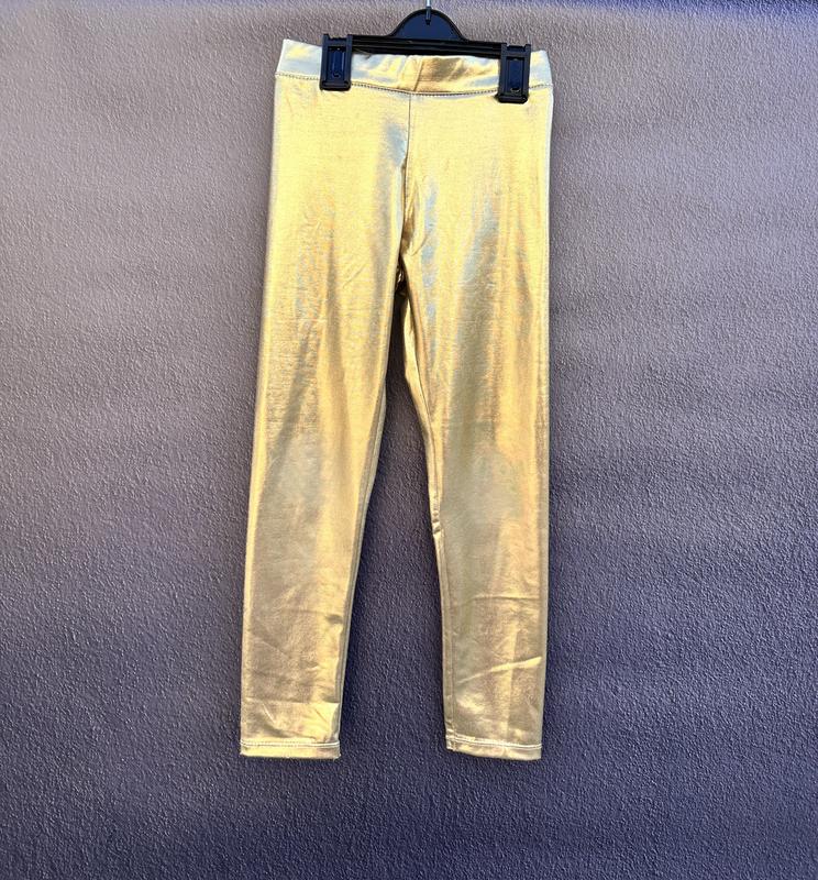Розмір 6-7/122, святкові лосини від H&M Трохи протерті коліна. Як варіант можна зробити нашивки на коліна. Інших дефектів немає. Довжина 67 см, талія 25,5 см, крок 49 см, стегна 28,5 см.