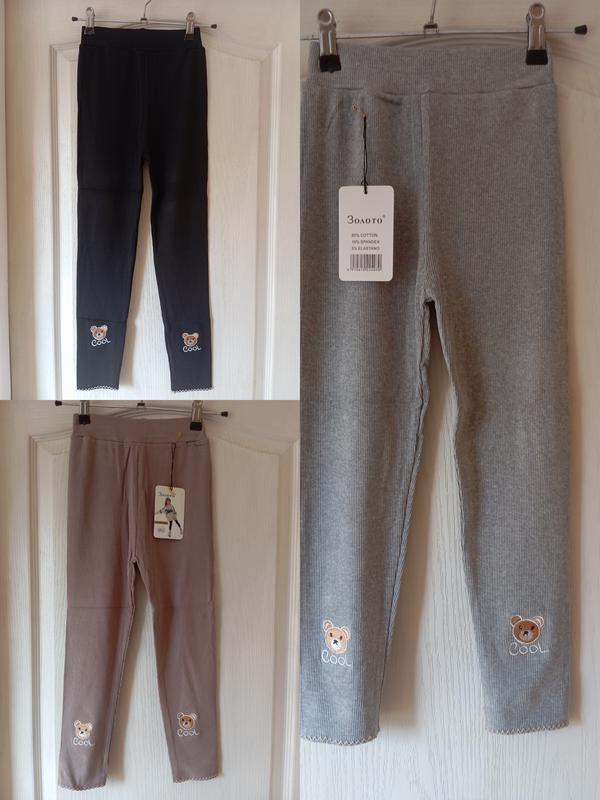 Лосины детские в рубчик, мишка вышит. Очень хороший состав - 85,% хлопка.