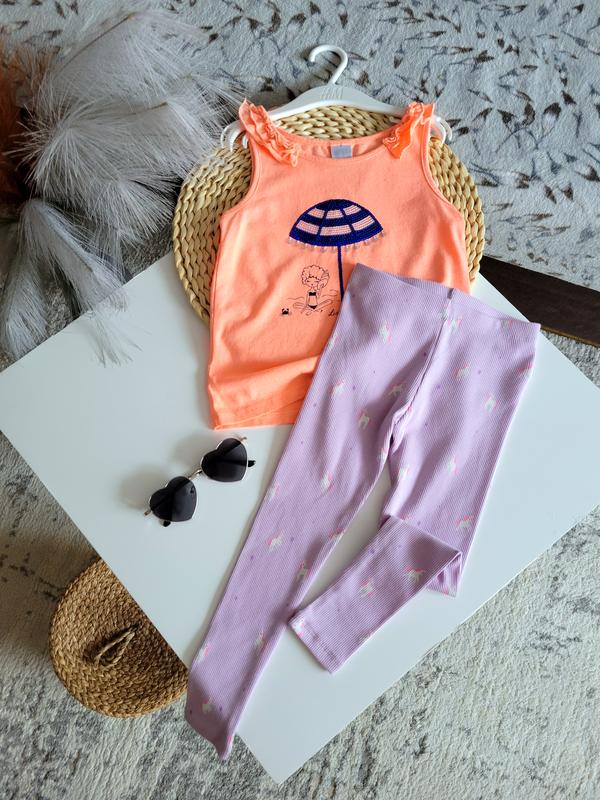 Комплект 🔴Размер 4/5р Как новое все Маечка Длина 42.5 Ширина под руками 30 Лосинки Длина 58 Крок 41 Пояс 22.5-29