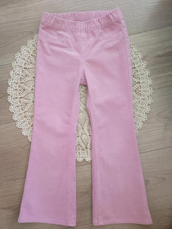 Стильные, модные вельветовые лосины для малых модниц. Ткань 92% коттон, красивый розовый цвет, слегка тянутся.Ззади есть два кармана.Гарное качество по доступной цене, состояние идеальное, без недостатков. Длина -68,5, Попеса -26-29, ПОбедер-33, посадка -19, крок -49,5.