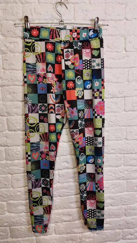 Состояние очень хорошее Тянется хорошее 90% полиэстер 10% эластан Ширина по линии пояса в спокойном состоянии 26,5 см, пояс-резинка Ширина бедер 36 см Длинна по боковому 77 см