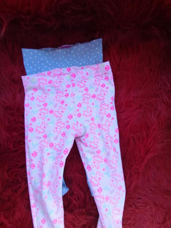 Лосины голубые в белый горох фирмы F&F на 18 мес. Розовые с свинкой пепой фирмы Peppa Pig на 18мес.