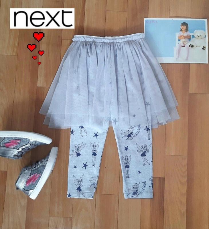 Лосины с фатиновой юбкой от английского бренда Next Tinker Bell Размер 3-4роки, 104см Лосины хлопковые удобные и эластичные, хорошо тянутся. Состав лосины: 88% коттона, 8% эластана, 4% полистер Состав юбки: два слоя фатина, 100% полистер Цвет: светло-серый, лосины с принтом феи Tinker Bell ✅ Стан - идеальный! Замеры: Длина лосин 51см, Шаговый 36см Длина юбки 30см Пояс резинка 23см