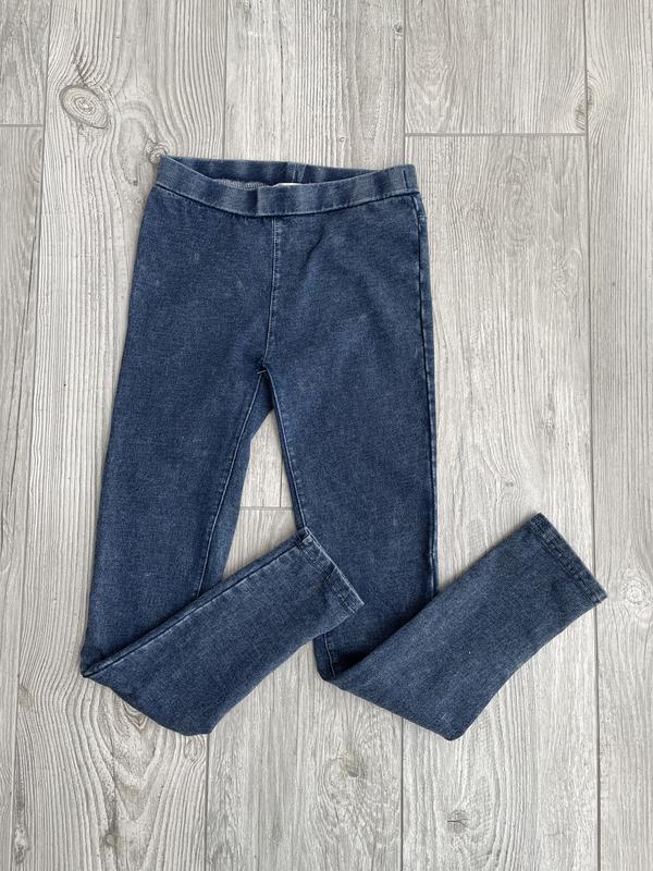 Класні лосини, матеріал під джинс на дівчинку ріст 134-146. Матеріал плотний. 95% котон, 5% еластан. Стан відмінний. Тягнуться. Чудово підійдуть на весну-осінь, прохолодні літні дні. Заміри: по боковому шві - 81 см, по внутрішньому - 62 см, пояс у спокійному стані півобхват 28,5 см.