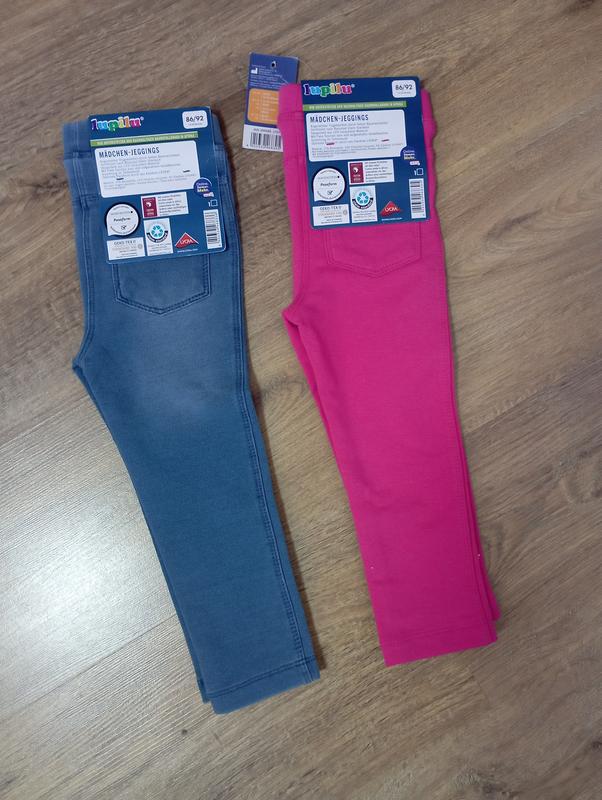 Lupilu - це популярний німецький бренд одягу, який використовує тільки високоякісні та надійні матеріали, комфортні при носінні, надійні та прості у догляді. Якість одягу чудово підходить для ніжної шкіри малюків. Одяг розроблений таким чином, щоб малюки відчували себе комфортно, красиво та безпечно! Лосини, джегінси без утеплення німецького виробника Lupilu. Добре тягнуться. Дуже приємні на дотик. Джегінси, зручні і еластичні, в поясі широка гумка, ззаду 2 кишені. Склад тканини: 75% котону, 21% поліестер, 4% еластан. Колір: синій., рожевий. В наявності розмір 86/92.на 1-2роки довжина -47си шаговий шов-29см. талія по резинці -23см