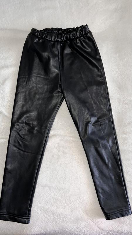Шкіряні лосини для дівчинки з утепленням, пояс резинка. Дуже гарної якості якісний шкірозамінник на велюрі; - не пропускає вологу; - внутрішня сторона виробу приємна до тіла; - не кошлатиться. 122 Довжина 73 Крок 48 Пояс-гумка 22-30 Стегна 30 Глибина 28