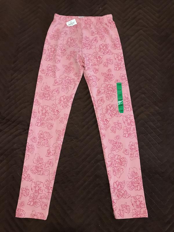 Нові котонові лосіни для дівчинки 134 на 8-9 років довжина виробу 76 см півобхват поясу 25 см. На резинці.