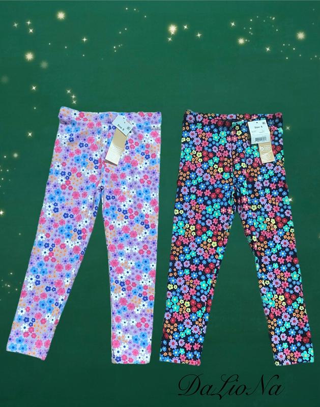 ‼️‼️Розпродаж. Ціна вказана за 2 пари‼️‼️Опис товару: Тип товару: Дитячі лосини (легінси). Дизайн: Обидві пари мають квітковий принт; одна пара світліша, переважно фіолетових та рожевих відтінків, інша – темніша, на чорному тлі з яскравими різнокольоровими квітами. Розмір: На етикетках вказаний розмір "5". Особливості: Еластичні та зручні для повсякденного носіння. Прихована гумка для комфортної посадки. Виготовлені з джерсі, що складається з 95% бавовни та 5% еластану, що забезпечує підвищену еластичність. Можна прати в пральній машині. Заміри: - довжина пояса: 25,5 см., тягнеться до: 30 см.; - довжина лосин від пояса: 63 см.