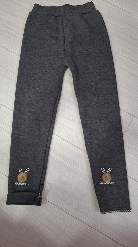 Лосины на девочку 128-134,серого цвета На флісі,резінка в таліі Классный декор в виде пушистиков зайчиков которые хорошо приклеены. Не затертые, не порованные