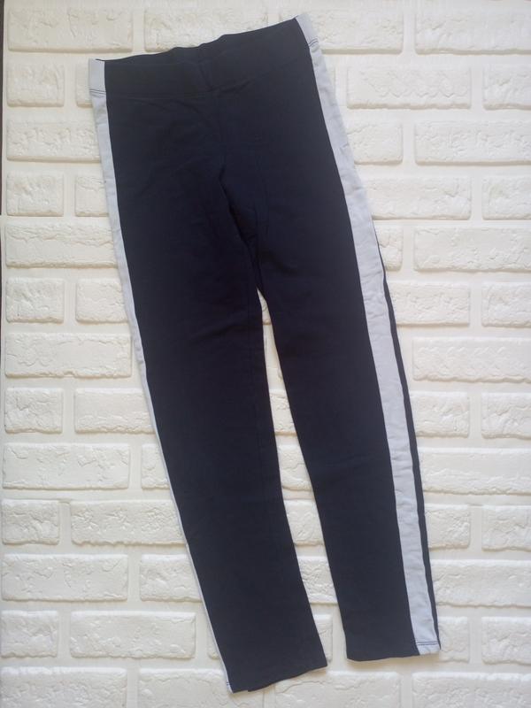 Лосины H&M на 11-12 лет. Темно-синие с белой полоской на боках. В идеальном состоянии. Ориентируйтесь на замеры: длина 82, пояс 30, тянется до 35
