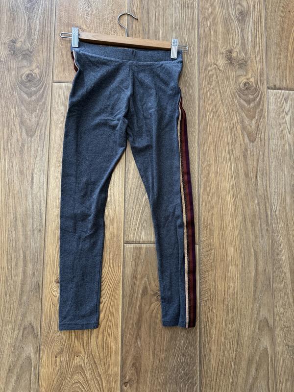 Легенси в ідеальному стані, дуже круто дивляться на дитині. Бокові полоски то моя любов. Шкода що вдягнули лише раз. Тканина не тонка, цупка і якісна. Довжина 76, шаговий 57, пояс 30. Дивіться всі мої оголошення, економте на пересилці!