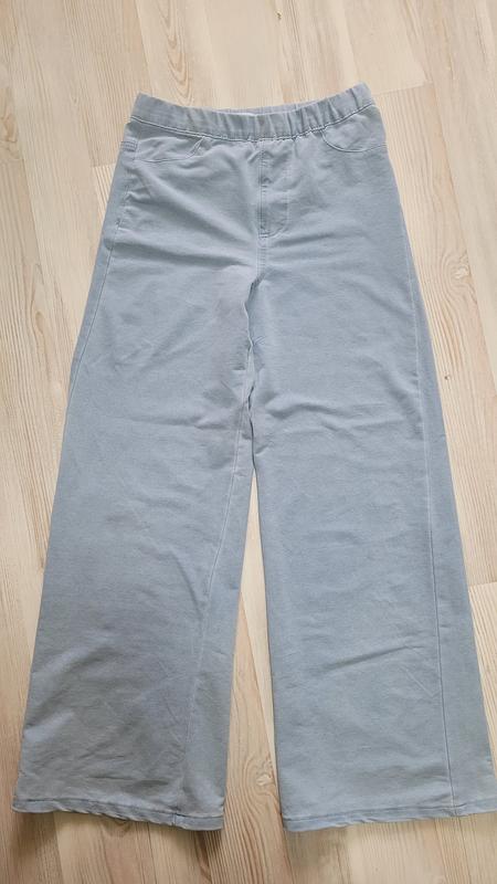 Почти новые, 2 раза одетые. Стильные и удобные. Брюки тянутся, как лосины, но модель и цвет под джинс. очень удобные. Размер указан 164, но я бы взяла на меньший 152-158. поэтому и продаем Замеры: Пот - 33 тянется до 43 ДВ - 96 ШШ - 71 ширина штанини внизу 28 см