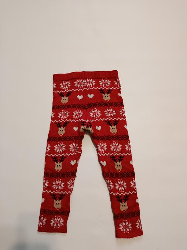 Леггинсы, лосины с оленями на 2-4 года, теплые, на резинке, хорошо тянутся