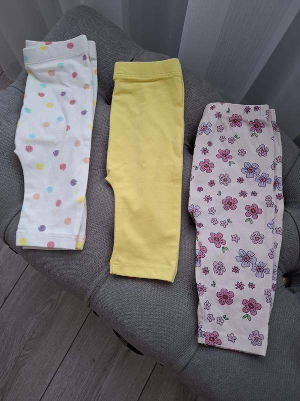 Новесненькие, классные, трикотажные лосинки на девочку 0-3 м. в пользовании были только разовые, быстро выросли из них. Очень мягушкие, резиночка не тугая. Искренняя рекомендация. Цена символична.