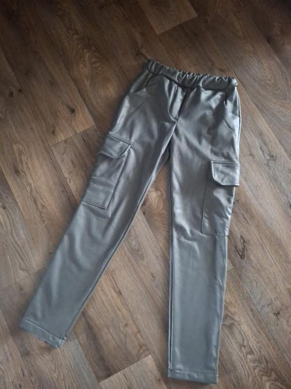 Брюки из экокожи на велюре,тепленькие,гарные,модные,с карманами.до роста 140 см.