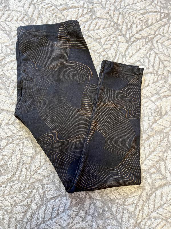 Лосіни в золотистий принт, тканина щільна, якісна( підійдуть на осінь), на ріст 134/140 Довжина- 68см Пояс -30см ПОБ- 37см Дивіться ще інші мої оголошення!🌹