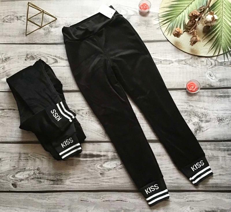 через кнопку купить только полная оплата!!!! Велюровые лосины на флисе с манжетом. Теплые, мягкие, приятные к телу, с высокой талией. В поясе резинка. Цвет - черный. Ткань велюр, с внутренним флисовым подкладом. Манжет с надписью - KISS Замеры велюр-кис: 158 длина - 93см, шаг - 67см, пояс- 29см, полуобхват бедер - 42см.