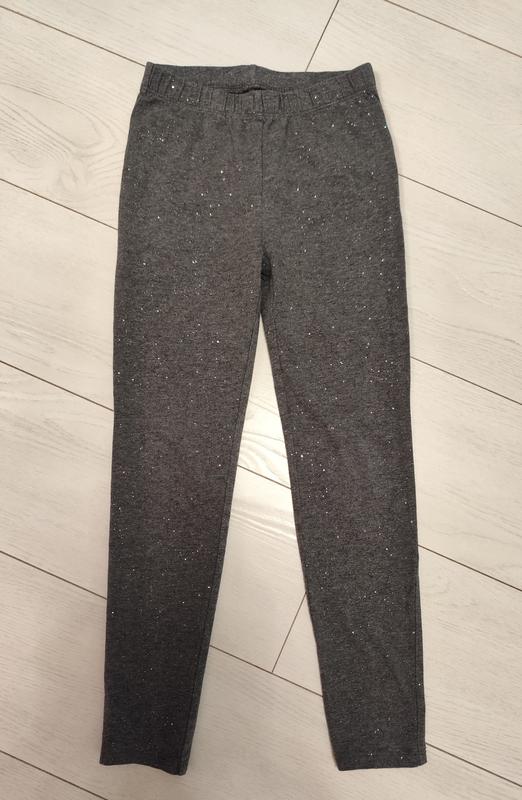 Детские лосины на девочку серого цвета с блёстками на возраст 6-7 лет, замеры и состав указаны на фото