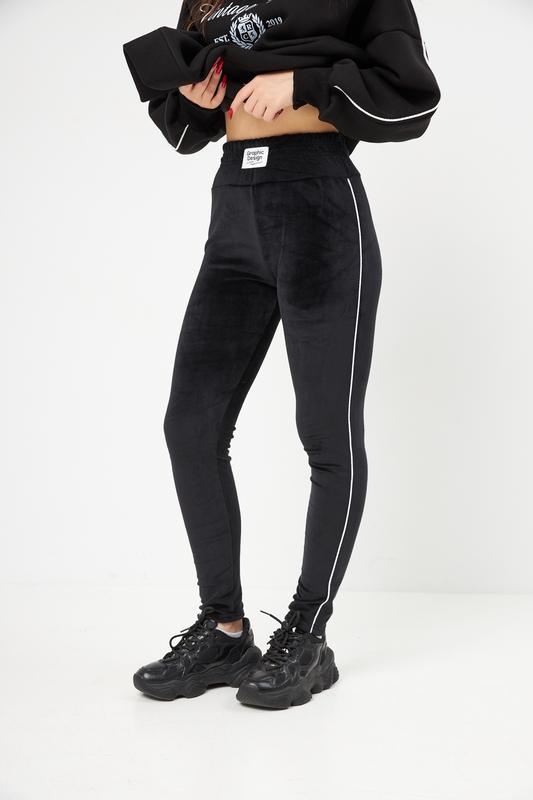 Утепленные велюровые лосины Пояс на широкой резинке. По бокам белый кант. Ткань - велюр на велюре. Цвет - черный. Замеры: 140 длина - 83см, шаг - 63см, пояс-26см. 146 длина - 86см, шаг - 67см, пояс-27см. 152 довжина - 91см, крок - 71см, пояс-28см. 158 довжина - 92см, крок - 72см, пояс-29см. 164 длина - 94см, шаг - 73см, пояс-30см.