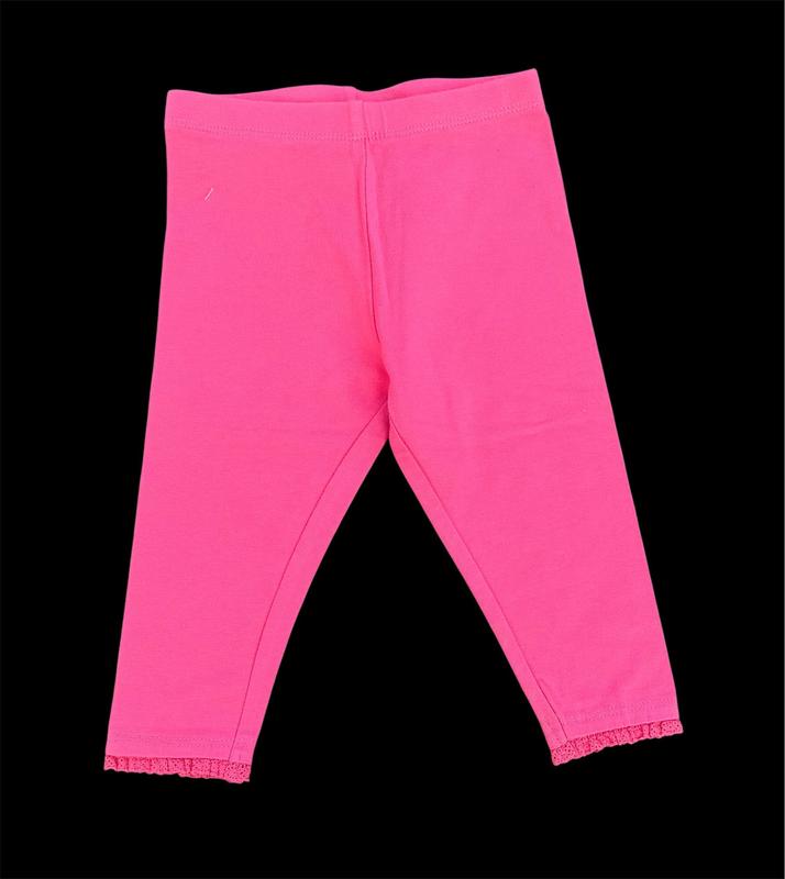 Дитячі бавовняні лосини - неодмінний атрибут гардеробу дівчинки. Їх можна одягати під штани для збереження тепла, а можна носити в приміщенні чи на вулиці, як самостійний елемент одягу, поєднувати зі спідницею чи сукнею для створення затишного образу. Декоровані внизу бавовняним мереживом.Заміри: 68 см (6-9 міс): довжина 35 см/у поясі 40 см/у стегнах 46 см/крок 22 см