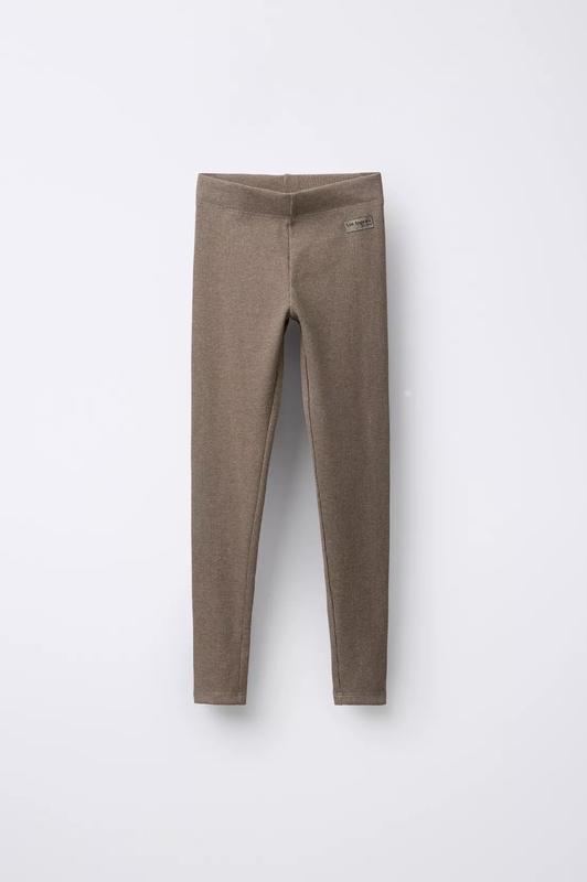 Легінси з еластичним поясом в рубчик, мають декоративну етикетку спереду. Колір: коричневий (глинястий колір засмаги) Склад: 61% поліестер, 34% бавовна, 5% еластан Розмір: 13/14 років (164 см) (підійдуть на дорослий XXS, XS)