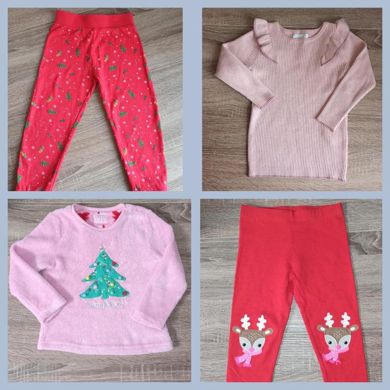 Набор одежды, лосины с оленями, кофта теплая пижамная с елочкой, пижамные брюки с елками, пуловер