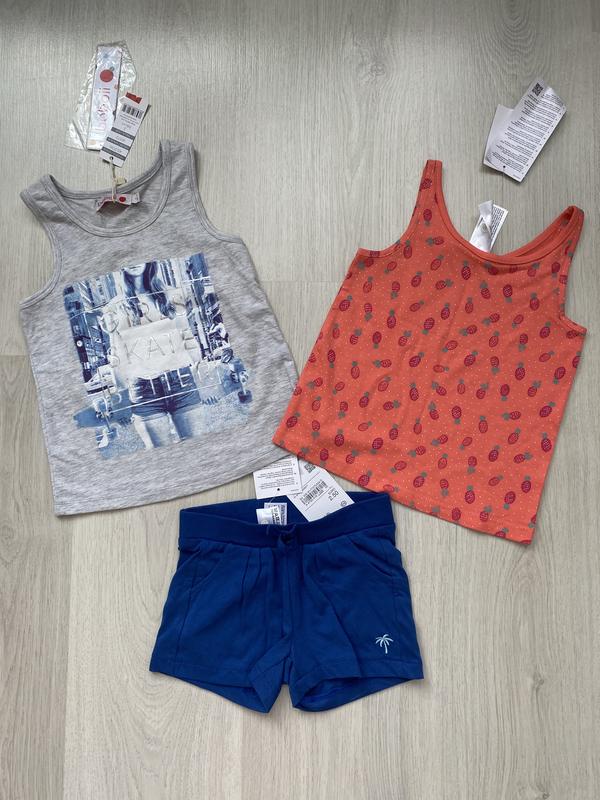 Новые коттоновые майки и шорты, все размер 98. Серая майка фирмы boboli цена 110грн. Майка с ананасами фирмы C&A 95 грн. Шорты С&А 100 грн. Цена комплекта из 3 единиц 270 грн.(90грн. 1 вещь)