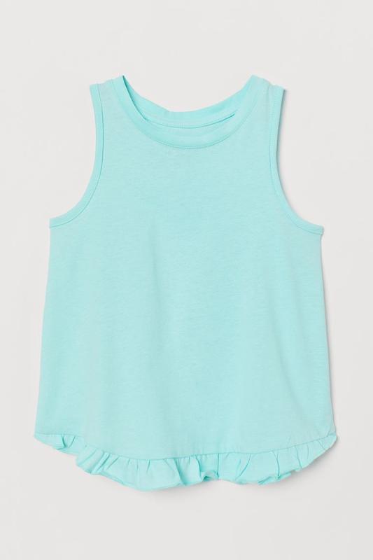Новый топ (майка) из трикотажа из органического хлопка с оборкой по низу. Нежно-бирюзового цвета. К майке есть шорты, см. другие товары в объявлениях