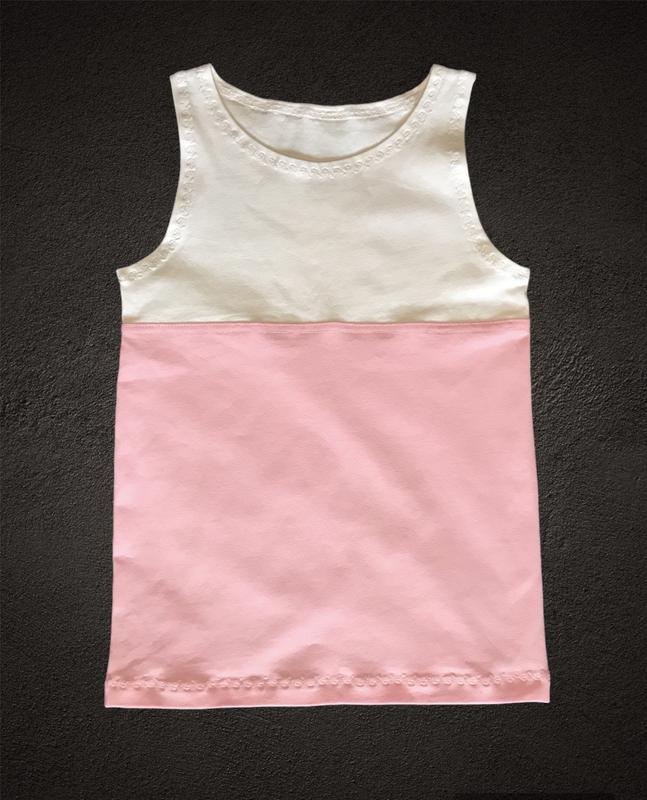 Майка на девочку 1. Длина 50 см, обхват под подмышками 64см, обхват низа 70 см 2. Длина 50 см, обхват под подмышками 68 см, обхват низа 72 см