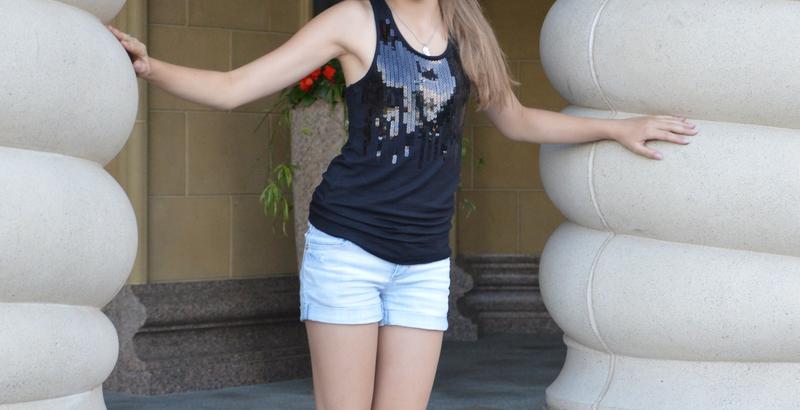 Майка Gloria Jeans примерно на 10 лет, верхняя часть украшена пайетками